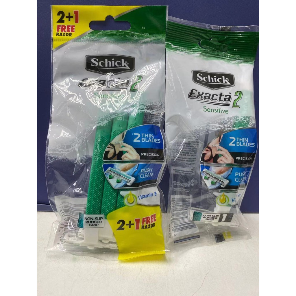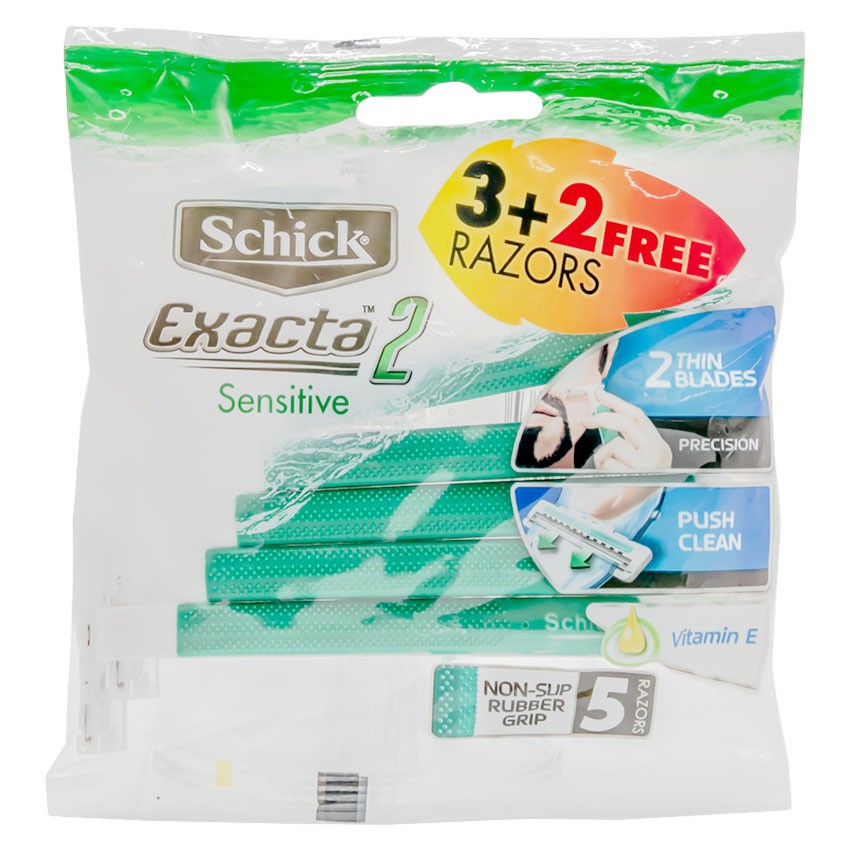 Ships from and sold by amazon.sa. Schick exacta 2 sensitive disposable razor set. Sensitive with vitamin e disposable razors, 5 +1pack. For added protection, we recommend using your schick st2 disposable razor with edge shave gel. Twin ultra thin blades for a close shave.
